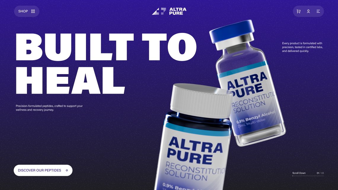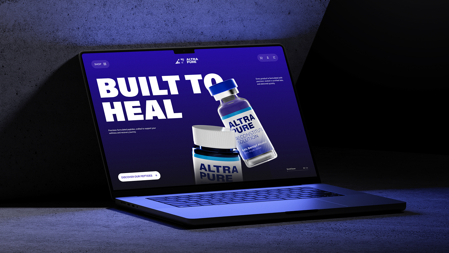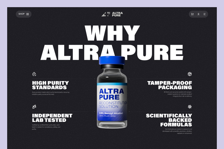 Altra Pure is a peptide-focused medical eCommerce platform designed to provide high-quality, lab-tested compounds for research and professional use. The website was created to communicate scientific credibility, product purity, and regulatory transparency while offering a seamless and intuitive shopping experience. Our role was to design a structured, modern interface that builds trust at every touchpoint balancing clinical precision with accessibility. The platform needed to clearly present complex product information while maintaining a clean and refined user experience.