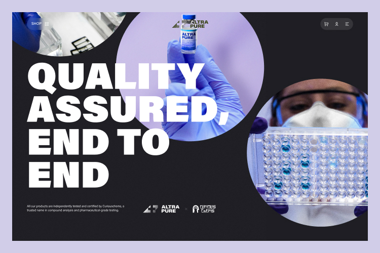 We designed a clean, grid-based interface built on strong hierarchy and structured content blocks. Product pages were carefully crafted to highlight key information such as purity levels, lab testing results, and usage specifications in a clear and digestible format. A minimal visual language, combined with soft clinical tones and precise typography, reinforces trust and professionalism. Subtle interactions and smooth transitions guide users through the experience from discovery to purchase without distraction. We also implemented a scalable system that allows easy expansion of product categories, educational content, and regulatory updates as the brand grows.